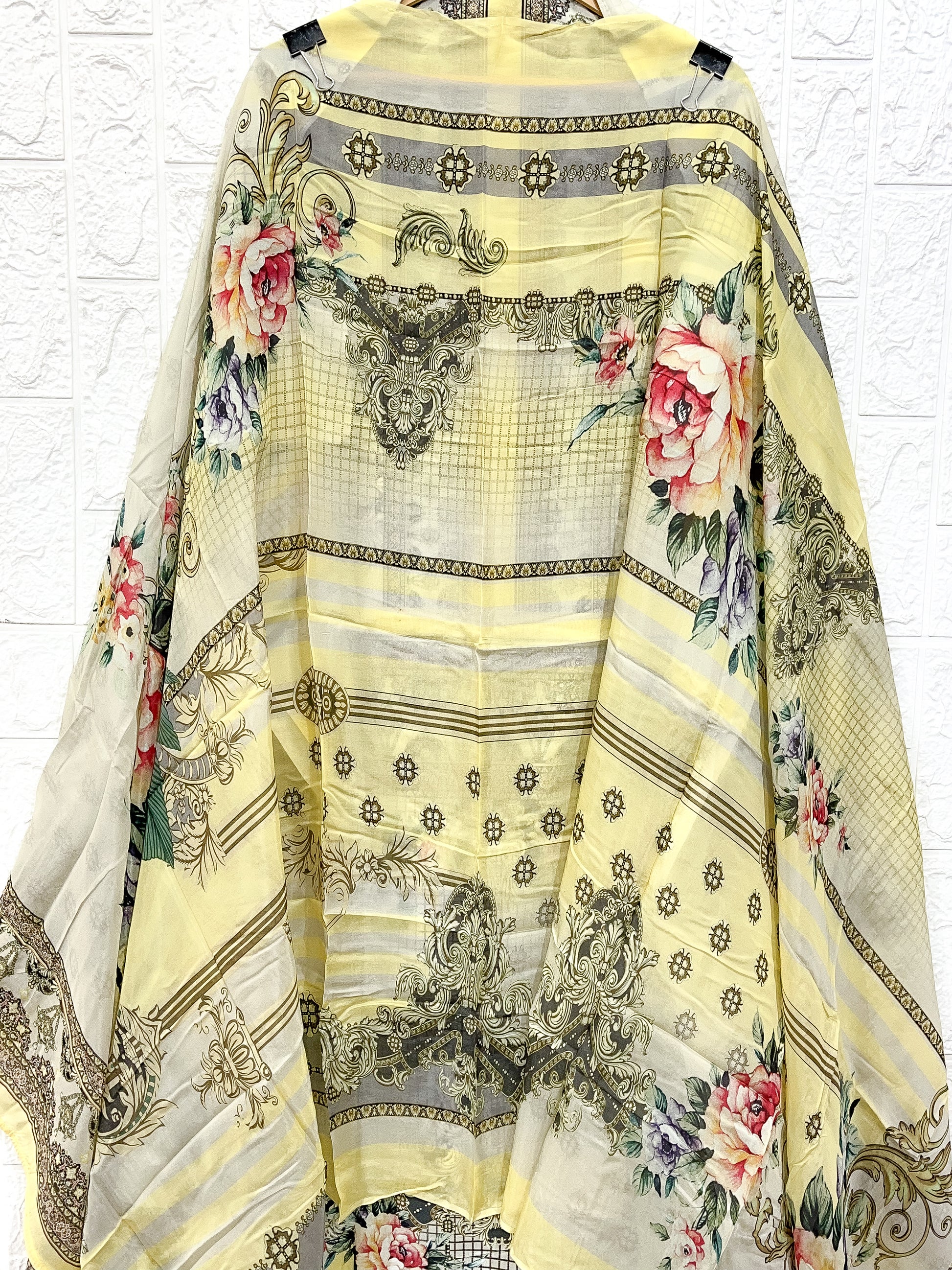 Top - Unstitched Digital Print Lawn Cotton Kurta with Embroidered Patch on Neck (2.5m)