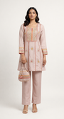 Elevate your ethnic wardrobe with this exquisitely crafted Stitched Shimmer Silk Co-Ord Set, designed to blend timeless elegance with modern sophistication. Featuring a beautifully embroidered kurta paired with matching straight-fit pants, this ensemble is perfect for festive gatherings, daytime celebrations, and elegant soirées.