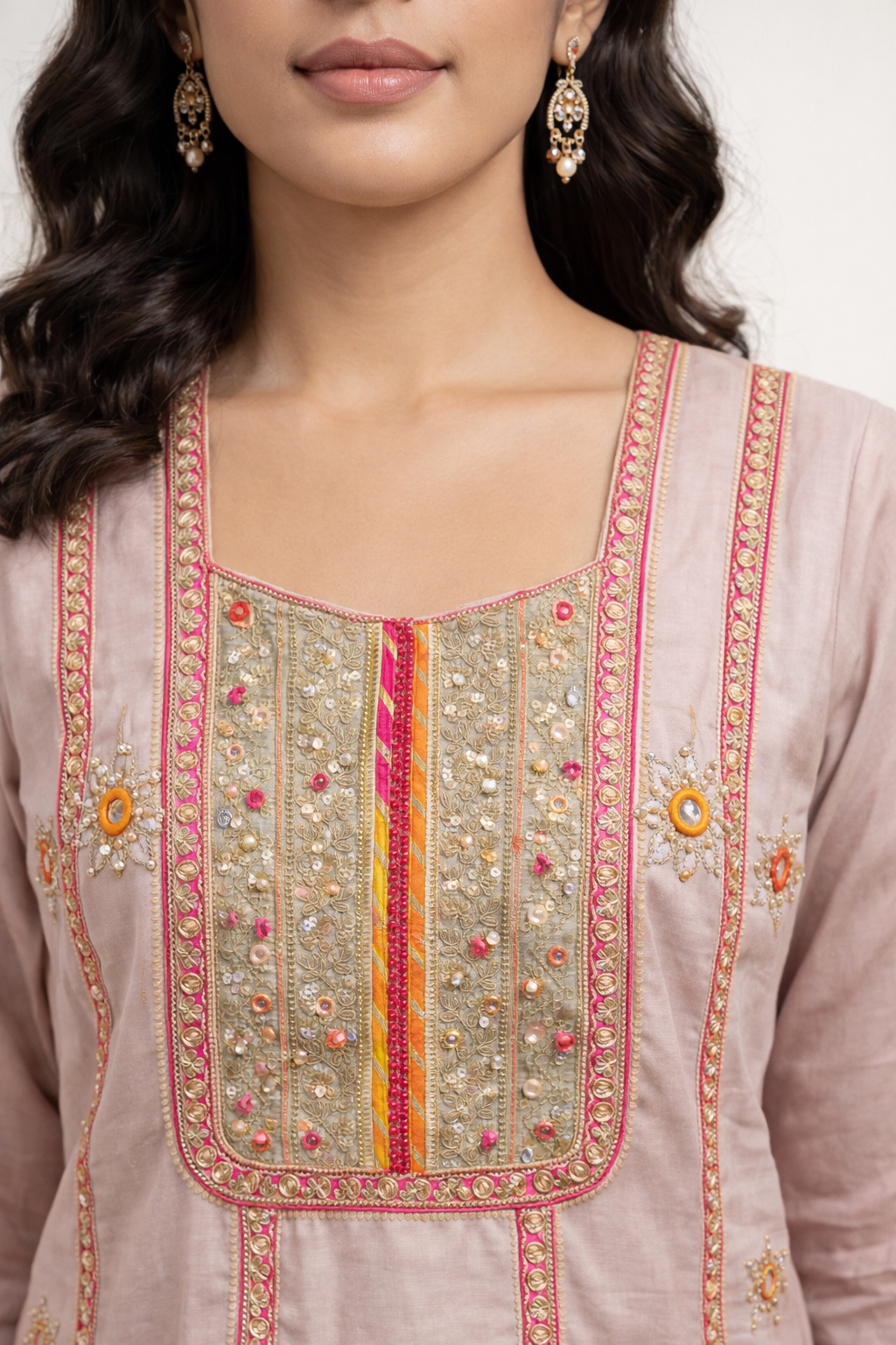 • Design: Heavily embroidered yoke with mirror & sequin accents