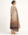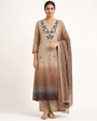 Beige–Brown Ombre Linen Embroidered Kurta Set with Dupatta