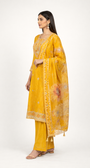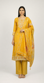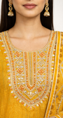 Mustard Yellow Glass Organza Embroidered Unstitched Salwar Suit Set