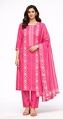 Size & Fit: Kurta: 2.5 Mtrs; Bottom: 2.5 Mtrs; Dupatta: 2.25 Mtrs