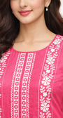 Step into effortless elegance with this beautifully crafted pink kurta set, designed for everyday sophistication and festive charm. Made from lightweight, breathable fabric, the kurta features intricate white floral embroidery arranged in graceful vertical panels, lending a flattering and elongating silhouette.