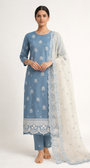 Elevate your everyday ethnic wardrobe with this premium dusty blue cotton kurta set, designed for effortless elegance and all-day comfort. Crafted from soft, breathable cotton fabric, the kurta features delicate white floral embroidered butis scattered evenly across the body, creating a subtle yet sophisticated look.