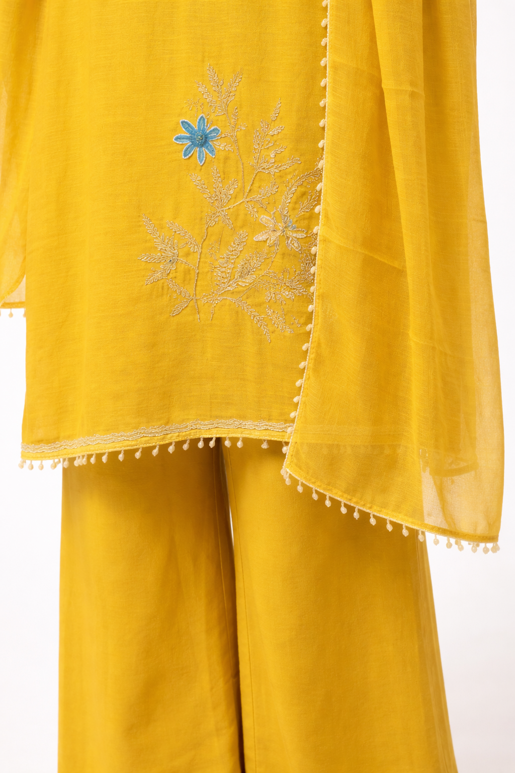 Top - Unstitched Mul Chanderi Kurta with Sequencing on neck & Hand Pearl Work on daman