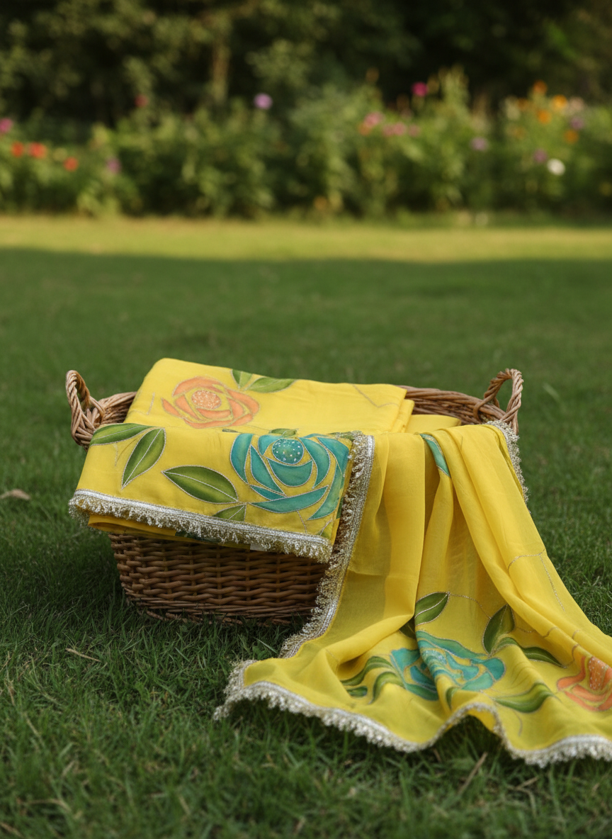 Dupatta - Organza Dupatta with Hand Brush Print, Manual Gotta Work