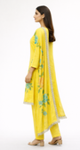 Top - Unstitched Organza Kurta with Brush Print, Manual Gotta Work
