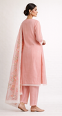 Paired with a smooth Shantoon bottom, the set ensures comfort and fluid drape while balancing the lightweight kurta perfectly. Completing the ensemble is a matching Organza dupatta, highlighted with coordinated floral prints and a delicate lace trim for an ethereal finish.