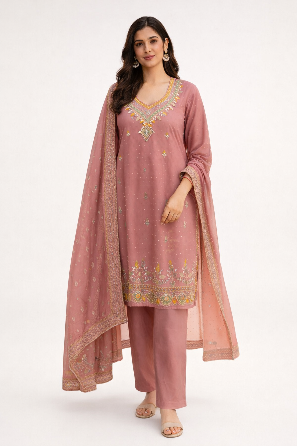 Ananyaa is a manufacturer of women’s ethnic wear, rooted in the heart of Chandni Chowk. We specialize in salwar suits, coordinated sets, and both stitched and unstitched collections, crafted in a wide range of fabrics and silk blends.