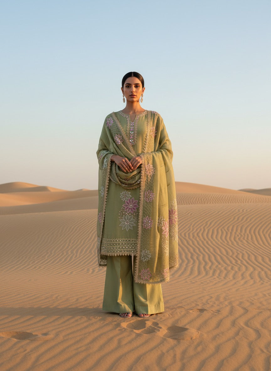 Top - Unstitched Shimmer Tissue Silk with Embroidery, cording & Mirror Work