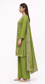 Unstitched Shimmer Silk Salwar Suit Set – Elegant Olive Green Embroidery