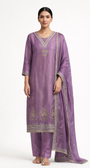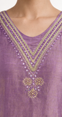 Elevate your festive and occasionwear wardrobe with this exquisite Unstitched Salwar Suit Set, crafted in a graceful mauve-purple tone and finished with delicate handcrafted embellishments.
