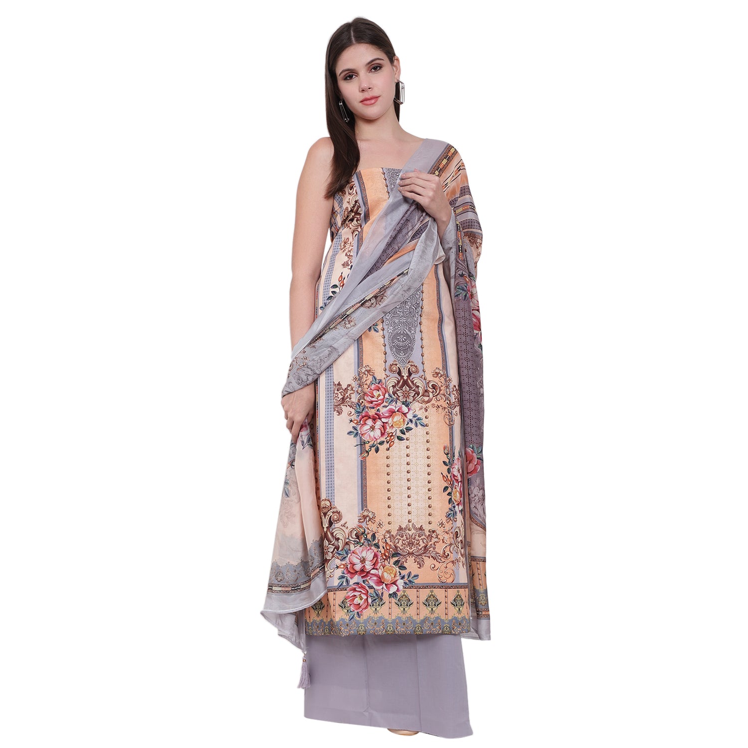 Top - Unstitched Digital Print Lawn Cotton Kurta with Embroidered Patch on Neck (2.5m)